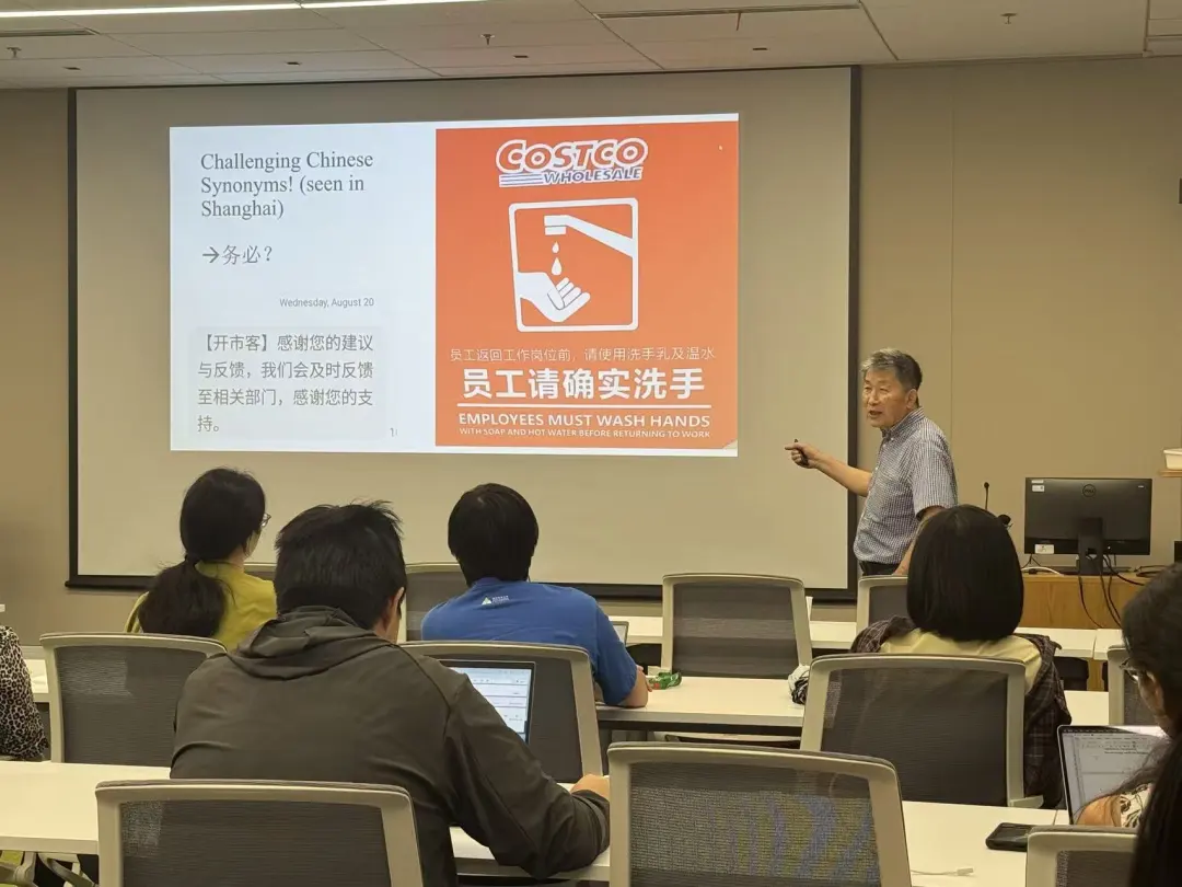 Following the presentation, Dr. Xin Zhang, as moderator, led an insightful dialogue with Dr. Zheng-sheng Zhang, highlighting key issues such as how transliteration and free translation reflect different language attitudes, and how the nuances of homophones can be understood from the pedagogical and learning perspectives.