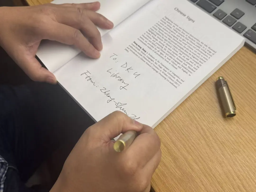 Dr. Zhang also donated a signed copy of his book Chinese Signs: An Introduction to China’s Linguistic Landscape to the DKU Library. This richly illustrated volume, featuring over 500 examples of Chinese public writing, is now available in the library collection. We warmly encourage our community to borrow it and discover the many layers of China’s linguistic landscape for themselves.