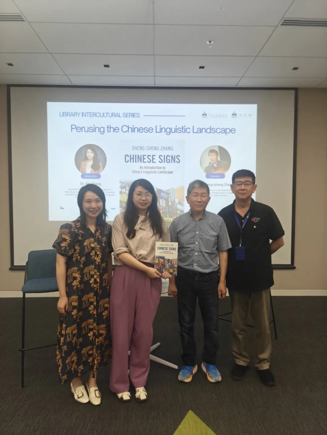 On September 3, 2025, Duke Kunshan University (DKU) Library and DKU Language and Culture Center (LCC) co-hosted a Library Intercultural Series event titled “Perusing the Chinese Linguistic Landscape.” The event was made possible through the efforts of Dr. Andrew Lee, Research and Instruction Librarian at DKU Library. It featured Dr. Zheng-sheng Zhang from San Diego State University, who presented his newly published book, Chinese Signs: An Introduction to China’s Linguistic Landscape. The event was moderated by Dr. Xin Zhang, Assistant Professor of Chinese Language and Intercultural Communication from the LCC.