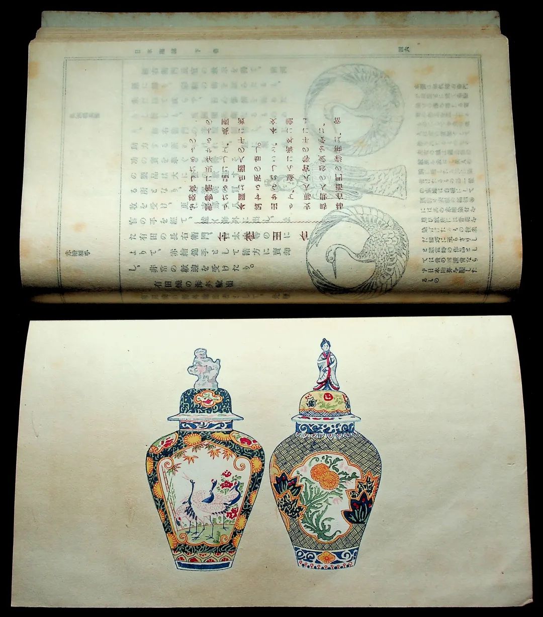 Similarly, the two volumes on the history of Japanese porcelain (published in 1919) provides an overview, including chapter titles such as: “Using porcelain for sake vessels,” “The Rise of Porcelain Kilns,” “Porcelain should not be completely destroyed,” and, sadly as the very next chapter, “Destroyed at the end of Hajime.” These volumes also have several chapters on the relationship between the Japanese and Chinese ceramics industries and cultural and technological transfers.