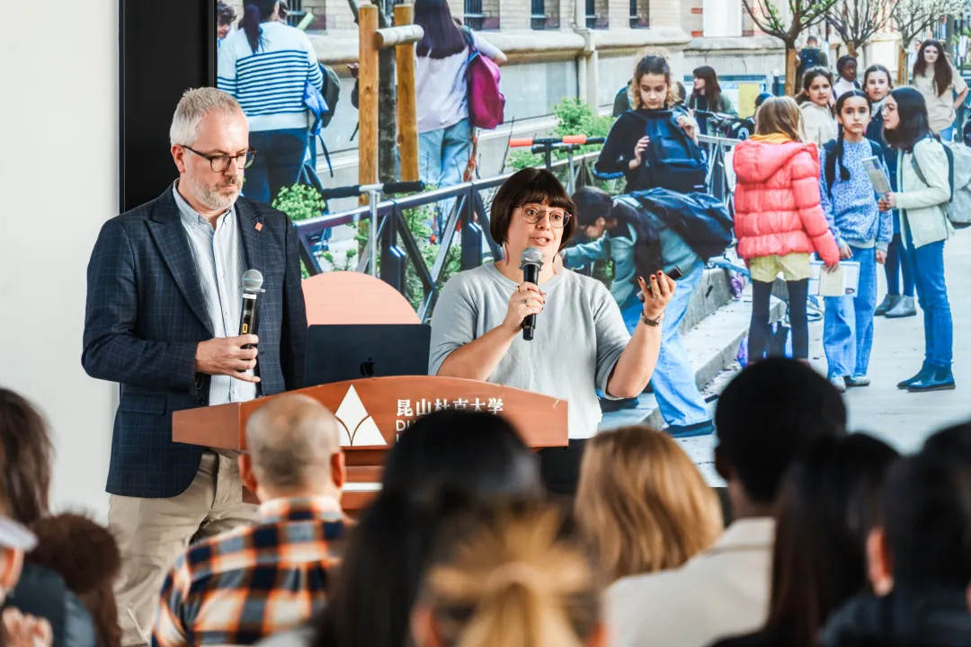 On December 6, 2025, Duke Kunshan University (DKU) Library in collaboration with the Environmental Research Center and the Division of Social Sciences, hosted an Author Talk as part of the DKU Library Author Talk Series at the DKU Visitor Center. The event featured Melissa Bruntlett of Modacity Creative and Chris Bruntlett of the Dutch Cycling Embassy, co-authors of Women Changing Cities: Global Stories of Urban Transformation. Faculty, students, and external guests gathered to explore how women leaders around the world are reshaping cities through more inclusive, sustainable, and people-centered approaches to urban governance.