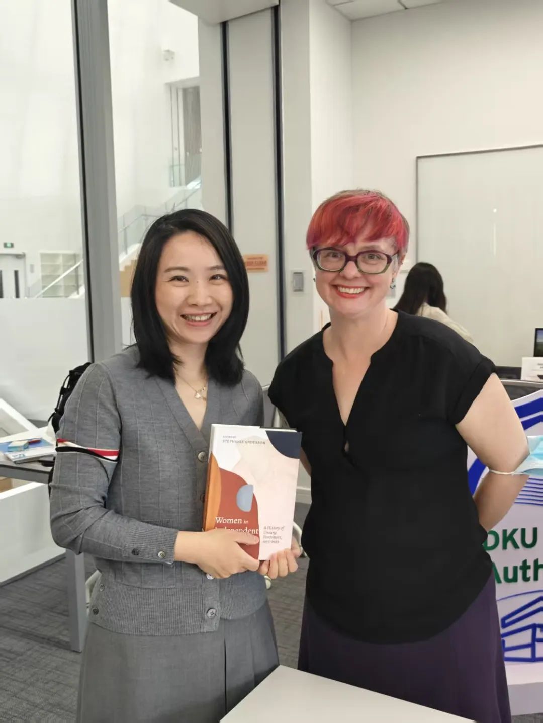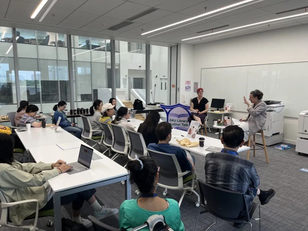 The event featured Dr. Stephanie Anderson, Assistant Professor of Literature and Creative Writing at DKU, who presented her new book Women in Independent Publishing: A History of Unsung Innovators, 1953–1989. Twenty-two attendees joined in person, and four participated online to explore the history, gender dynamics, and student-driven collaboration behind this groundbreaking book. DKU Interim University Librarian Mengjie Zou opened the session by welcoming the speakers, and Dr. Kolleen Guy, Associate Professor of History at DKU, moderated the discussion.